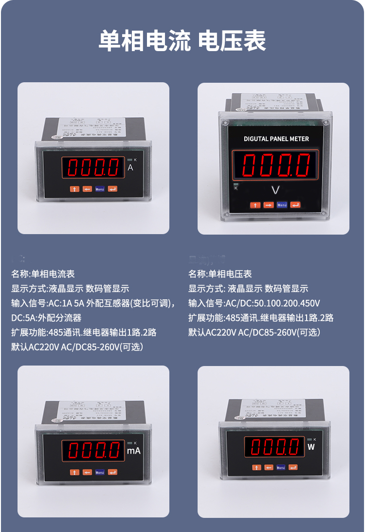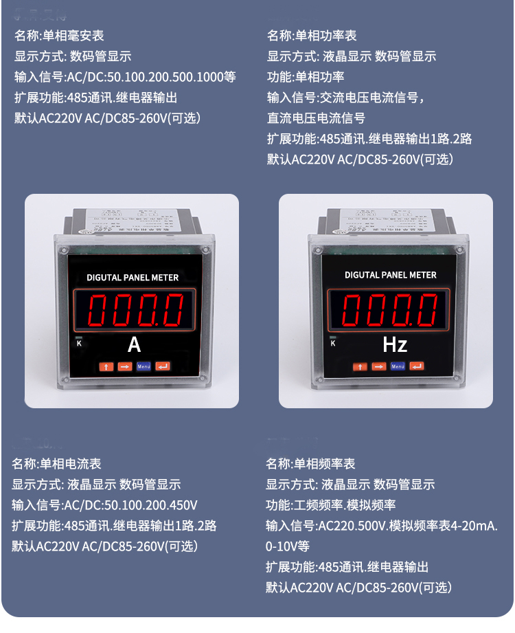 產(chǎn)品總匯>智能數(shù)顯單三相有功功率表 頻率表